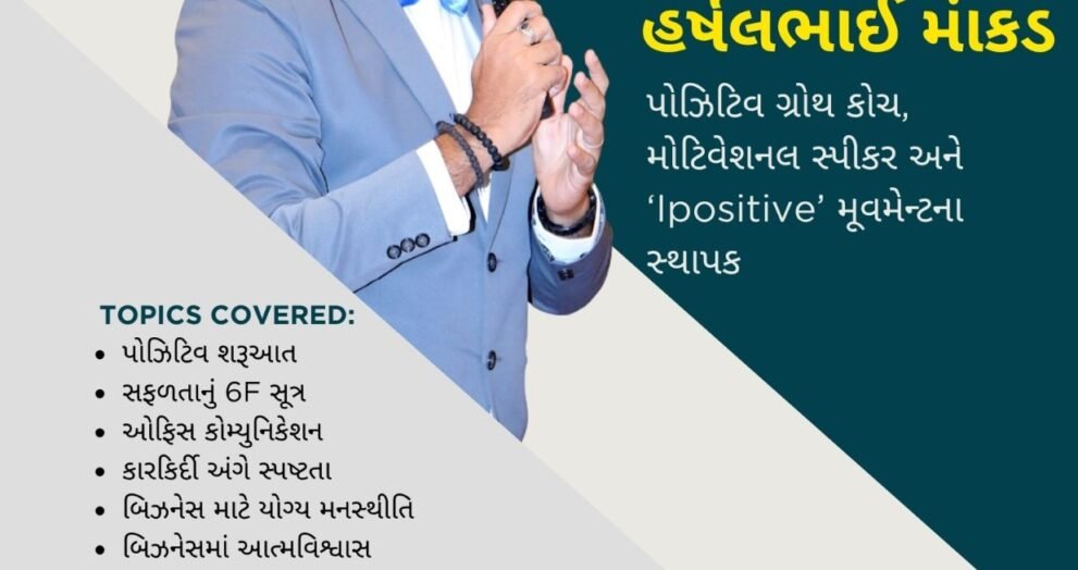 જાણીતા પોઝિટિવ ગ્રોથ કોચ, મોટિવેશનલ સ્પીકર અને ‘Ipositive’ મૂવમેન્ટના સ્થાપક હર્ષલ માંકડ આપશે ટ્રેનિંગ કરુણા ફાઉન્ડેશન ટ્રસ્ટ, રાજકોટ દ્વારા તા.15 નવેમ્બર, શનિવાર 2025ના રોજ સાંજે 06:00 થી 08:00 વાગ્યા સુધી “Ipositive” વિષય પર જાણીતા પોઝિટિવ ગ્રોથ કોચ, મોટિવેશનલ સ્પીકર હર્ષલ માંકડનું ગ્રોથ સેશન રાખવામાં આવ્યું છે, જે કરુણા ફાઉન્ડેશન ટ્રસ્ટના ઓનલાઇન પ્લેટફોર્મ પર લાઇવ બતાવવામાં […]