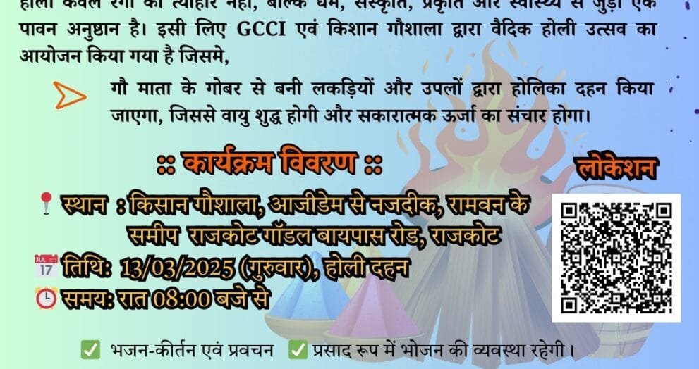 GCCI અને કિશાન ગૌશાળા દ્વારા “વૈદિક હોળી” નું દિવ્ય આયોજન.