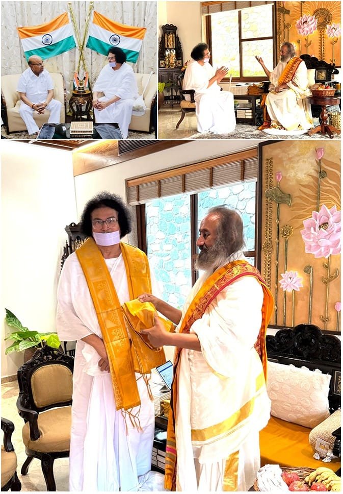 શ્રી શ્રી રવિશંકરજીએ શાલ ઓઢાડીને આચાર્ય લોકેશજીને સન્માનિત કર્યા