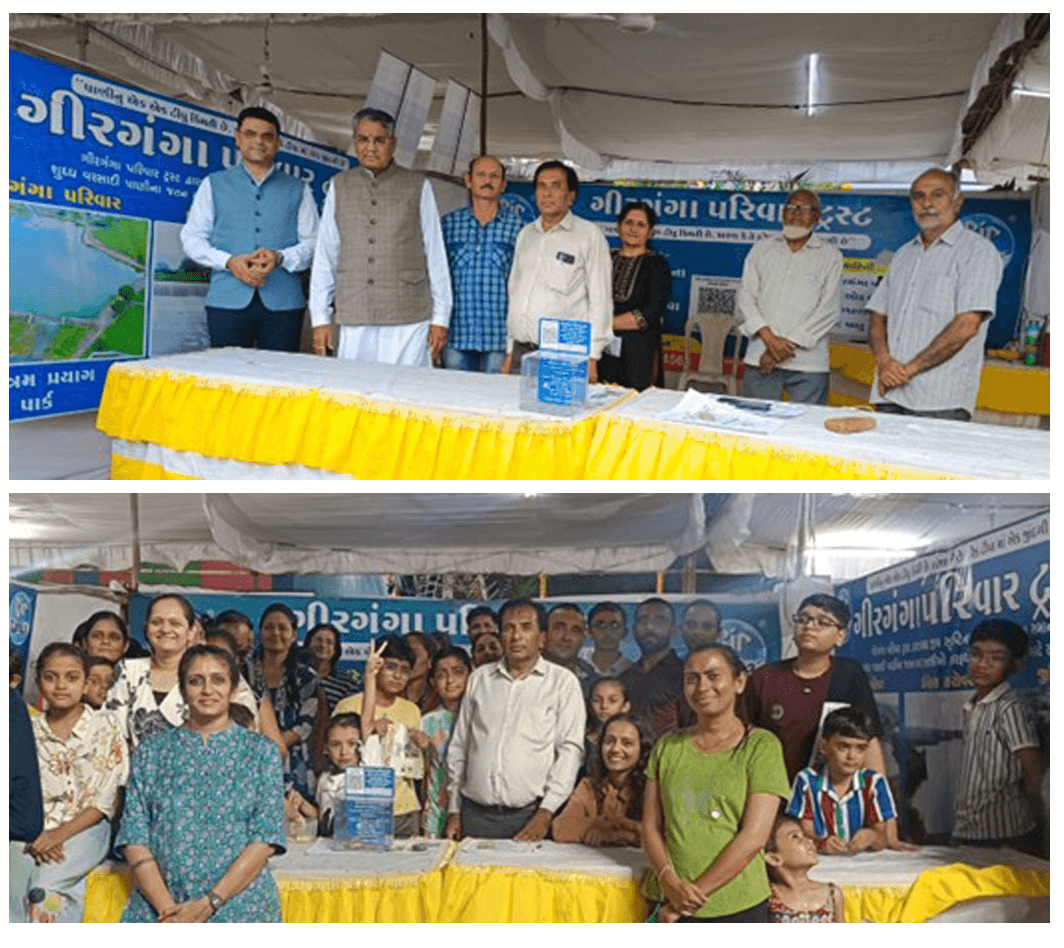 સમાજના દરેક લોકો સુધી “જલ એજ જીવન” છે, તેવી માહિતી પહોંચે તેના માટે રાજકોટના શોર્યનું સિંદૂર લોકમેળામાં ગીરગંગા પરિવાર ટ્રસ્ટ દ્વારા એક સ્ટોલનું આયોજન રાખેલ હતું, તેમાં લોકોએ મુલાકાત લઇ અને અમૃત સમાન વરસાદી શુદ્ધ પાણીનું જતન કેવી રીતે થાય તેની માહિતી અપાતી હતી, જેમાં ગુજરાત રાજ્યના કૃષિમંત્રી શ્રી રાઘવજીભાઈ પટેલ, રાજકોટના કલેક્ટરશ્રી ડો. ઓમ પ્રકાશ એ મુલાકાત લીધી અને અનેક ઉદ્યોગપતિઓ, સમાજ સેવકો અને દાતાશ્રીઓ તેમજ અનેક બહેનો અને ભાઈઓએ ખૂબજ રસ પૂર્વક માહિતી મેળવી હતી. જે વરસાદી પાણી વર્ષોથી આપણે લોકો તેનો ગર્વ કરી રહ્યા છીએ, એવો અહેસાસ થવા લાગ્યો અને અનેક લોકોને અગાસીના પાણી કે ફળિયાના પાણી પોતાના આંગણામાં પાકા ટાંકા બનાવી અને બારે મહિના પીવા લાયક પાણી ભરીએ તેમજ વધારાનું પાણી હોય તે બોરમાં જવા દઈએ આ જ રીતે ગામડે ગામડેથી પધારેલા ખેડૂતોએ ખાસ પોતાની ખેતી માટે પોતાના બોર-કુવા રિચાર્જ થાય તેના માટે ખેત તલાવડી અને તૂટેલા ચેકડેમો રિપેર કરવા ઊંડા, ઊંચા તેમજ નવા બનાવવા ની માહિતી મેળવી અને તે આટલું સરળ હોય એવું સમજી અને આ કાર્ય પોતે જાતે કરવા અને ગામ લોકો સાથે મળી અને આ કાર્યથી ખેતીની આવકમાં ખૂબ વધારો થશે અને ખર્ચ પણ ઘટશે તેમજ વૃક્ષો અને વનસ્પતિઓ ના રક્ષણ થવાથી પશુધનમાં પણ ખૂબ જ આરોગ્યની દ્રષ્ટિએ ફાયદો થશે તેવા હેતુથી દરેક લોકો આમાં જોડાશે. જળસંચય માટેના ચેકડેમ રીપેરીંગ, ઉંચા, ઉંડા તેમજ નવા ચેક ડેમો બનાવવા બોર-કુવા રિચાર્જ, ખેત તલાવડી, સોર્સ ખાડા જેવા 1,11,111 સ્ટ્રક્ચર તૈયાર કરવાના સંકલ્પ કરેલ છે, તેમાંથી ૮૦૦૦ થી વધુ જળ સંચયના કાર્ય પૂર્ણ કરેલ છે. આ કાર્યને વધુ સફળ બનાવવા માટે ગીરગંગા પરિવાર ટ્રસ્ટના પ્રમુખશ્રી દિલીપભાઈ સખીયા, પ્રકૃતિ પ્રેમી દિનેશભાઈ પટેલ, પ્રતાપભાઈ પટેલ, જમનભાઈ પટેલ(ડેકોરા), વિરાભાઈ હુંબલ, રમેશભાઈ ઠક્કર, શૈલેશભાઈ જાની, કૌશિકભાઈ સરધારા, વગેરે લોકો જહેમત ઉઠાવી રહયા છે.