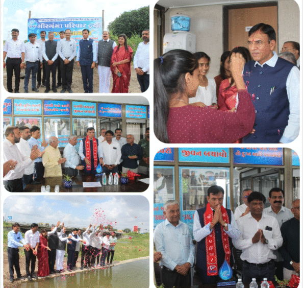 ડો.મનસુખભાઈ માંડવીયાના વરદ હસ્તે બાલાજી વેફર્સના આર્થીક સહયોગથી બનેલ હીરાબા સ્મૃતિ સરોવરના જલ વધામણા