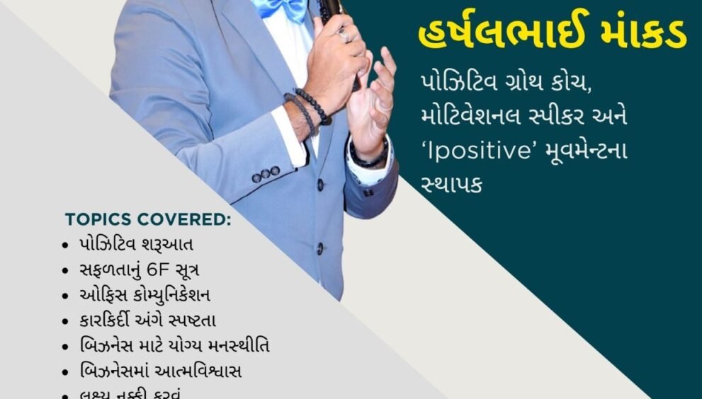 જાણીતા પોઝિટિવ ગ્રોથ કોચ, મોટિવેશનલ સ્પીકર અને ‘Ipositive’ મૂવમેન્ટના સ્થાપક હર્ષલ માંકડ આપશે ટ્રેનિંગ