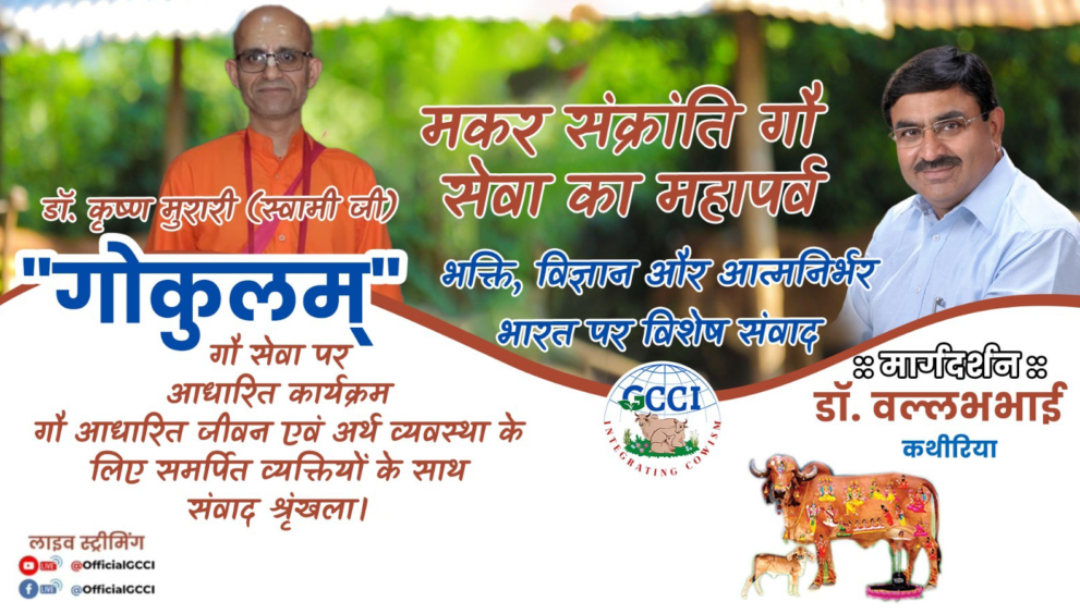 GCCI દ્વારા આયોજીત ગૌકુલમ વિશેષ સંવાદ સિરીઝમાં “મકર સંક્રાંતિ ગૌ સેવાનો મહાપર્વ – ભક્તિ, વિજ્ઞાન અને આત્મનિર્ભર ભારત” વિષય પર ડૉ. કૃષ્ણ મુરારીજી (ઇસ્કોન સંત) વૃંદાવન સાથે વિશેષ સંવાદનું તા.૧૦ -૦૧-૨૦૨૬, શનિવાર ના રોજ સાંજે ૦૭:૦૦ કલાકે આયોજન.