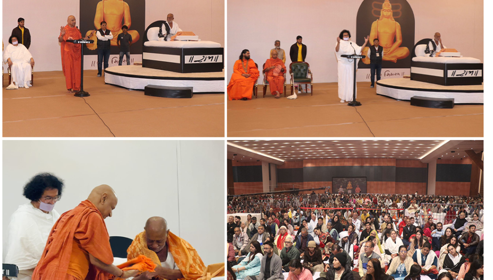 અહિંસા વિશ્વ ભારતી અને વિશ્વ શાંતિ કેન્દ્રના સંસ્થાપક જૈન આચાર્ય લોકેશજી દ્વારા આયોજિત પૂજ્ય મોરારી બાપૂની રામકથાનું શ્રવણ કરવા સ્વામી ગોવિંદદેવ ગિરી ભારત મંડપમ ખાતે પધાર્યા. આયોજન સમિતિના સભ્યોએ પ્રતીકચિન્હ ભેટ આપી મુખ્ય તથા વિશિષ્ટ અતિથિઓનું સ્વાગત કર્યું. તેમણે જણાવ્યું કે જૈન આચાર્ય લોકેશમુનિજીએ રામકથાનું આયોજન કરીને ઇતિહાસ સર્જ્યો છે.