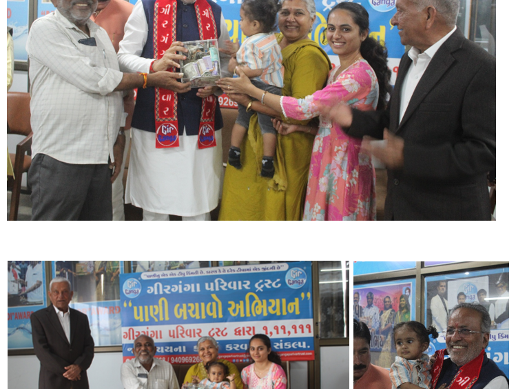 આ નવતર પ્રયોગ દ્વારા કુલ ₹40,000 જેટલી રકમ એકઠી થઈ હતી. આ તમામ રકમ તાજેતરમાં રાજ્યના વન અને પર્યાવરણ વિભાગના કેબિનેટ મંત્રી શ્રી અર્જુનભાઈ મોઢવાડિયાની તાજેતરની ગીરગંગા પરિવાર ટ્રસ્ટના કાર્યાલયની મુલાકાત દરમિયાન બાલધા પરિવારે ગીરગંગા પરિવાર ટ્રસ્ટને જળસંચય અને ચેકડેમ નિર્માણ જેવા ભગીરથ કાર્યો માટે સહયોગ તરીકે અર્પણ કરી દીધી હતી. દરમિયાન એક નિવેદનમાં શ્રી ગોપાલભાઈ બાલધાએ જણાવ્યું હતું કે,પાણી એ જ જીવનનો આધાર છે અને આવનારી પેઢી માટે જળસંચય અત્યંત અનિવાર્ય છે. ગીરગંગા પરિવાર ટ્રસ્ટ દ્વારા જે રીતે ચેકડેમો બાંધીને ભૂગર્ભ જળ ઉંચા લાવવાનું ભગીરથ કાર્ય થઈ રહ્યું છે, તે ખરેખર વંદનીય છે. અમારા પૌત્ર ‘હેમ’ના જન્મના આશીર્વાદ રૂપે અમે આ નાનકડો ફાળો જળસેવા માટે આપવાનું નક્કી કર્યું હતું. જો સમાજના દરેક પ્રસંગોમાં આવી જ રીતે સામાજિક કાર્યોને પ્રાધાન્ય આપવામાં આવે, તો આપણે ઉજ્જવળ ભવિષ્યનું નિર્માણ કરી શકીએ છીએ.ગીરગંગા પરિવાર ટ્રસ્ટના પ્રમુખશ્રી દિલીપભાઈ સખીયા, પ્રકૃતિપ્રેમી દિનેશભાઈ પટેલ, પ્રતાપભાઈ પટેલ, જમનભાઈ ડેકોરા, વિરાભાઈ હુંબલ, રમેશભાઈ ઠક્કર, શૈલેશભાઈ જાની, વસંતભાઈ લીંબાસીયા, કૌશિકભાઈ સરધારા, વગેરે ભાઈઓ જહેમત ઉઠાવી રહ્યા છે.