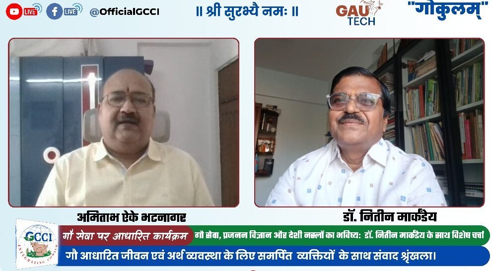 રાષ્ટ્રીય કામધેનુ આયોગના પૂર્વ અધ્યક્ષ તથા GCCI ના ફાઉન્ડર ચેરમેન ડૉ. વલ્લભભાઈ કથીરિયાના માર્ગદર્શન હેઠળ ગ્લોબલ કન્ફેડરેશન ઓફ કાઉ બેઝ્ડ ઇન્ડસ્ટ્રીઝ (GCCI) દ્વારા આયોજિત “ગૌકુલમ” વિશેષ સંવાદ સિરીઝ અંતર્ગત “ગૌ સેવા, પ્રજનન વિજ્ઞાન અને દેશી નસ્લોના ભવિષ્ય” વિષય પર મહારાષ્ટ્ર ગૌ સેવા આયોગના સભ્ય અને Gau Tech 2026 ની આયોજન સમિતિના સભ્ય ડૉ. નિતીન માર્કંડેય મુખ્ય વક્તા તરીકે ઉપસ્થિત રહ્યા હતા.
